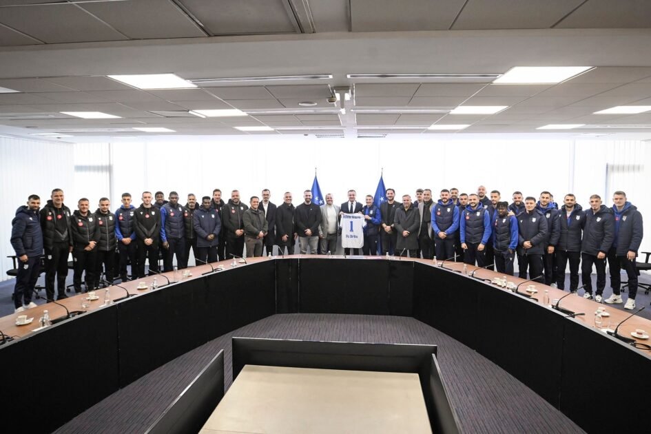 Në ndërtesën e Kryeministrisë sot u ndje atmosfera e futbollit evropian. Kryeministri në detyrë, Albin Kurti, priti me kënaqësi përfaqësuesit e FC Dritës — ekipit bardh e kaltërt që po i sjell sukses e krenari qytetit të Gjilanit dhe futbollit kosovar. Takimi ishte i ngrohtë, plot respekt dhe i mbushur me energji pozitive para sfidës së radhës.