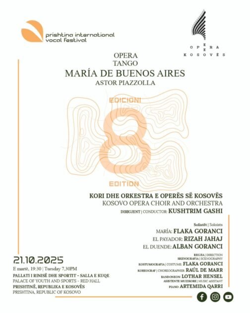 Opera e Kosovës sjell një ngjarje të jashtëzakonshme muzikore më 21 tetor, duke e ndezur skenën me veprën e famshme të Astor Piazzolla-s – “María de Buenos Aires”. Ky produksion unik, që ndërthur tangon, poezinë dhe teatrin, do të shfaqet në kuadër të festivalit PrIVocalFest, duke premtuar një përvojë të rrallë artistike për publikun vendas.