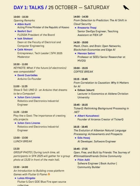 Konferenca “Software Freedom Kosova 2025”, ngjarja më e madhe vjetore për softuerin e lirë dhe me burim të hapur në Evropën Juglindore, hapet sot, më 25 tetor 2025, në Prishtinë, nën organizimin e Free Libre Open Source Software Kosova (FLOSSK). Ceremonia hapëse, që fillon në orën 10:00, do të ketë pjesëmarrjen e Kryeministrit në detyrë, Albin Kurti, duke shënuar një moment kyç për komunitetin teknologjik vendor.